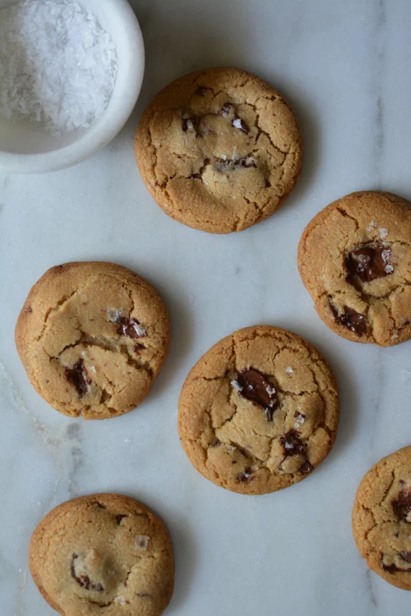 This is my GO-TO recipe for chocolate chip cookies. Your generic chocolate chip cookies pale in comparison to the brown butter, dark chocolate chunks, and sea salt flakes in these . These cookies are the my most made recipe at home. My husband even makes them all the time (sometimes better than I make them). If you're looking for a chocolate chip cookie recipe, do yourself a favor and save this recipe! You won't regret it.